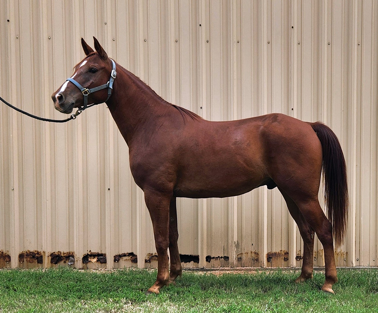 This horse is growing like a weed; I think he's already 15.1 since the summer. He's a very kind horse. We have just started him under saddle. He is a nice purebred who doesn't spook, and a great walk and very smooth. Breeders Sweepstakes. $5000. UPDATE! "Eli" is now owned by Manda Morris of TX!