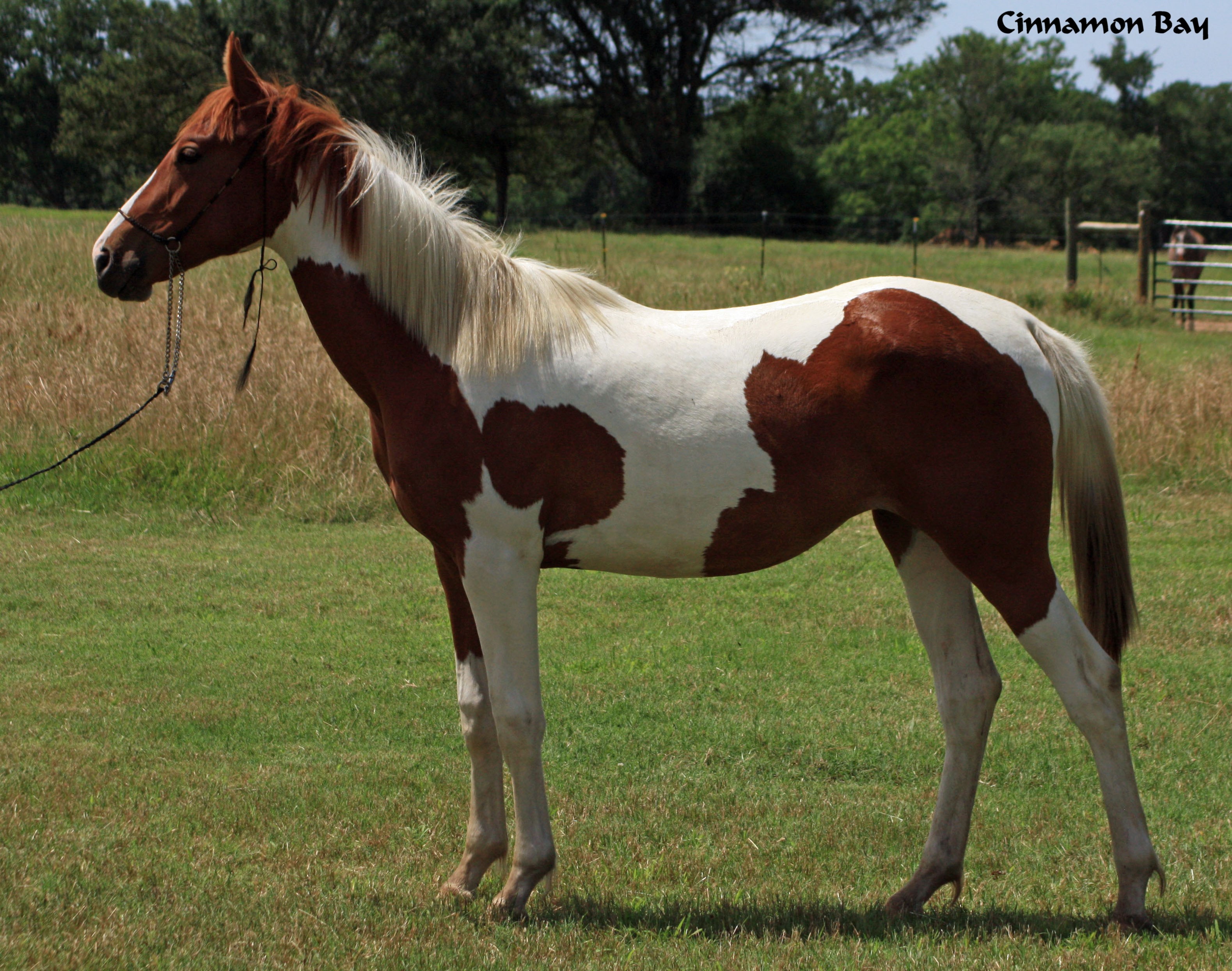 Cinnamon Bay: We wanted to get a Poseidon Bay foal from Sandy (CR Blonde Bombshell) before it was too late (he's 24) and we got a super nice filly! Sandy is Bruce's 100 mile horse, and she is fabulous! She's done the Big Horn, Old Dominion and Top of the World. Always sound and willing to go! Posey was a 3 time Pinto Endurance Horse of the Year so this cross is going to be amazing! Sandy will be back doing 100s again, so this may be the only cross between these two great horses! Cinnamon is approximately 1/2 saddlebred and 1/2 Arabian. Like Sandy, she prefers human company to 4 legged ones! $7500