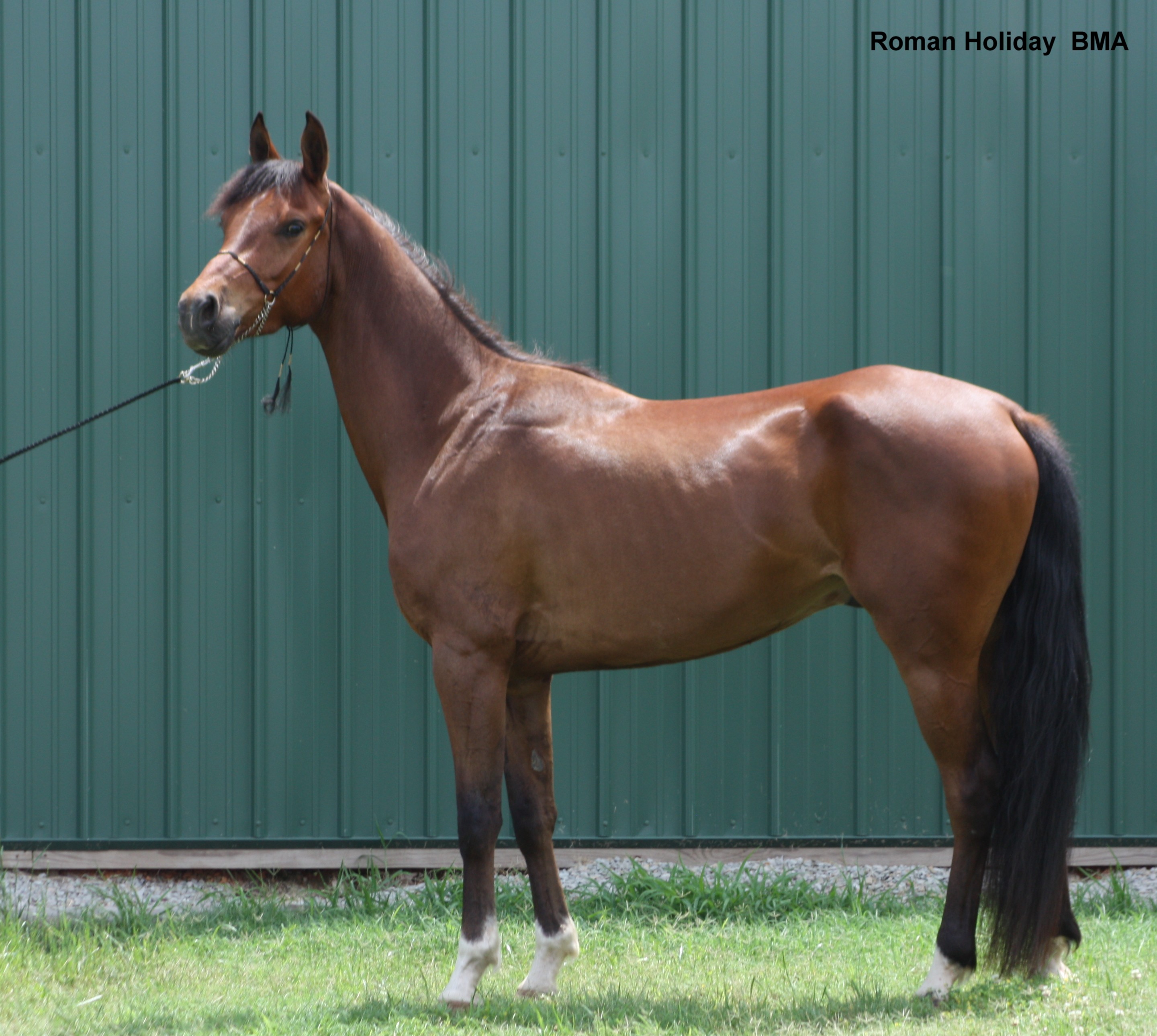 ROMAN HOLIDAY BMA: 4 yr old 15.3/4 purebred gelding. As you can see in the photo, Roman is a very kind horse. He's super willing and calm. He's a quieter horse than Tsaint or Ma Time and loves to be with people. When I turn him loose to eat grass, he just follows me around while I do chores! He's really smooth and very well trained. Breeders Sweepstakes. $6500. Video! https://www.youtube.com/watch?v=apORFGIqJoU UPDATE! Roman Holiday has found his owner with Denise Secino of Ocala Florida! Feel free to contact Denise regarding Firedance Farms horses! oakhillan@aol.com